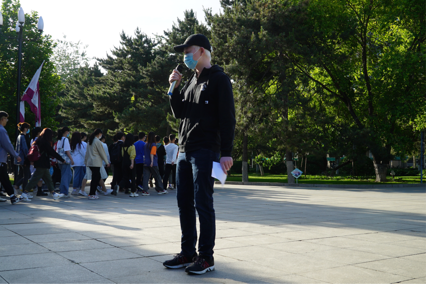 伴随着清晨的朝阳和国旗班同学们整齐的步伐,升旗仪式正式开始。在全体师生的注目中,五星红旗冉冉升旗。