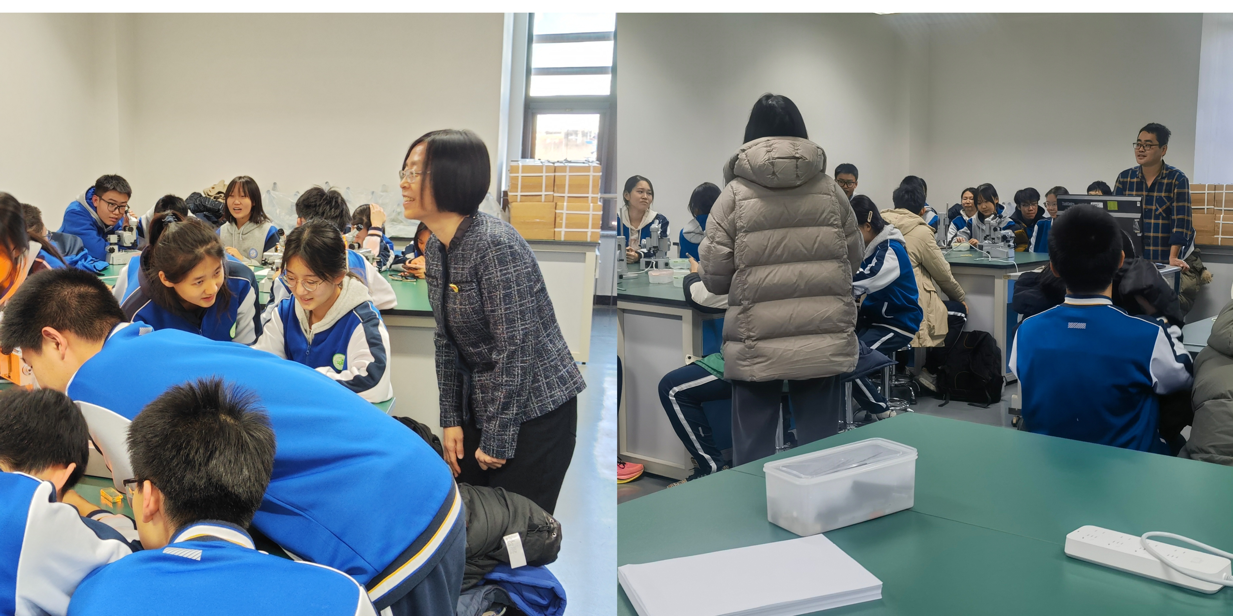 在博远楼六层物理实验室,澳门十大信誉好的网站物理系于建强为来访同学们上了一堂生动的物理实验课,讲授了如何测头发丝粗细。同学们随后又进行了实际动手测量,大家兴趣高涨,沉浸式体验了科学的魅力。