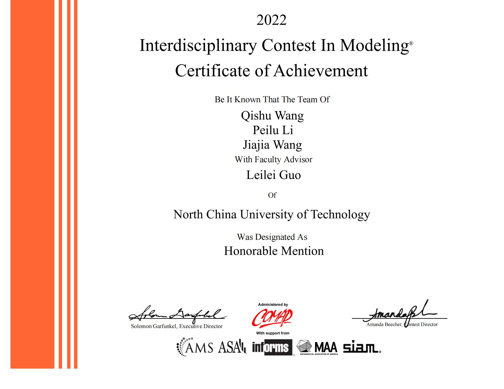 近日,由美国数学及其应用联合会主办的2022年国际大学生数学建模竞赛成绩揭晓。十大信誉官网有14个代表队参赛,获得二等奖(Honorable Mention)5项(15人)。