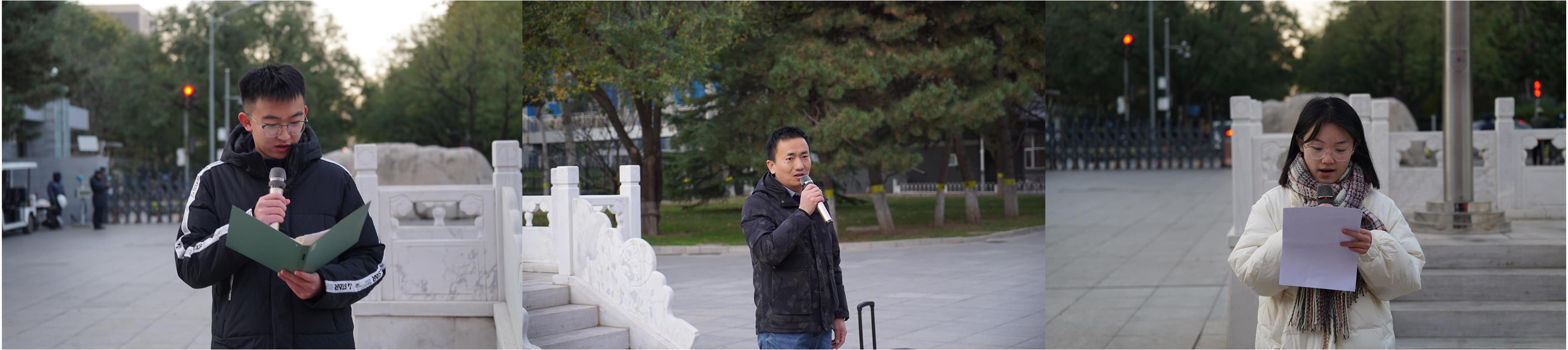 信23-3班李博言、统21-2班王梦圆作为学生代表进行国旗下的演讲。李博言同学表示作为当代大学生要积极响应党的号召,积极承担作为新时代青年的责任,不断学习以此来丰富自己,用青春谱写时代华章。王梦圆同学结合自己的学习经历,勉励新生们擦亮青春奋进的底色,让勤奋学习成为青春远航的动力,争做敢想敢为又善作善成的新时代好青年。